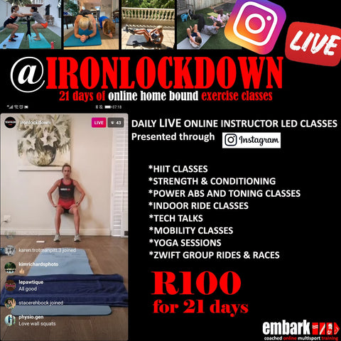 Our Embark coaches, bios, physios, pts, dietitians and invited guests host the strength, conditioning, toning and HIIT workouts, as well as an array of classes including yoga, indoor rides, Zwift rides & races and information talks. All of this is being streamed LIVE through Instagram. If you miss the LIVE broadcast, the classes are still accessible for 24 hours.